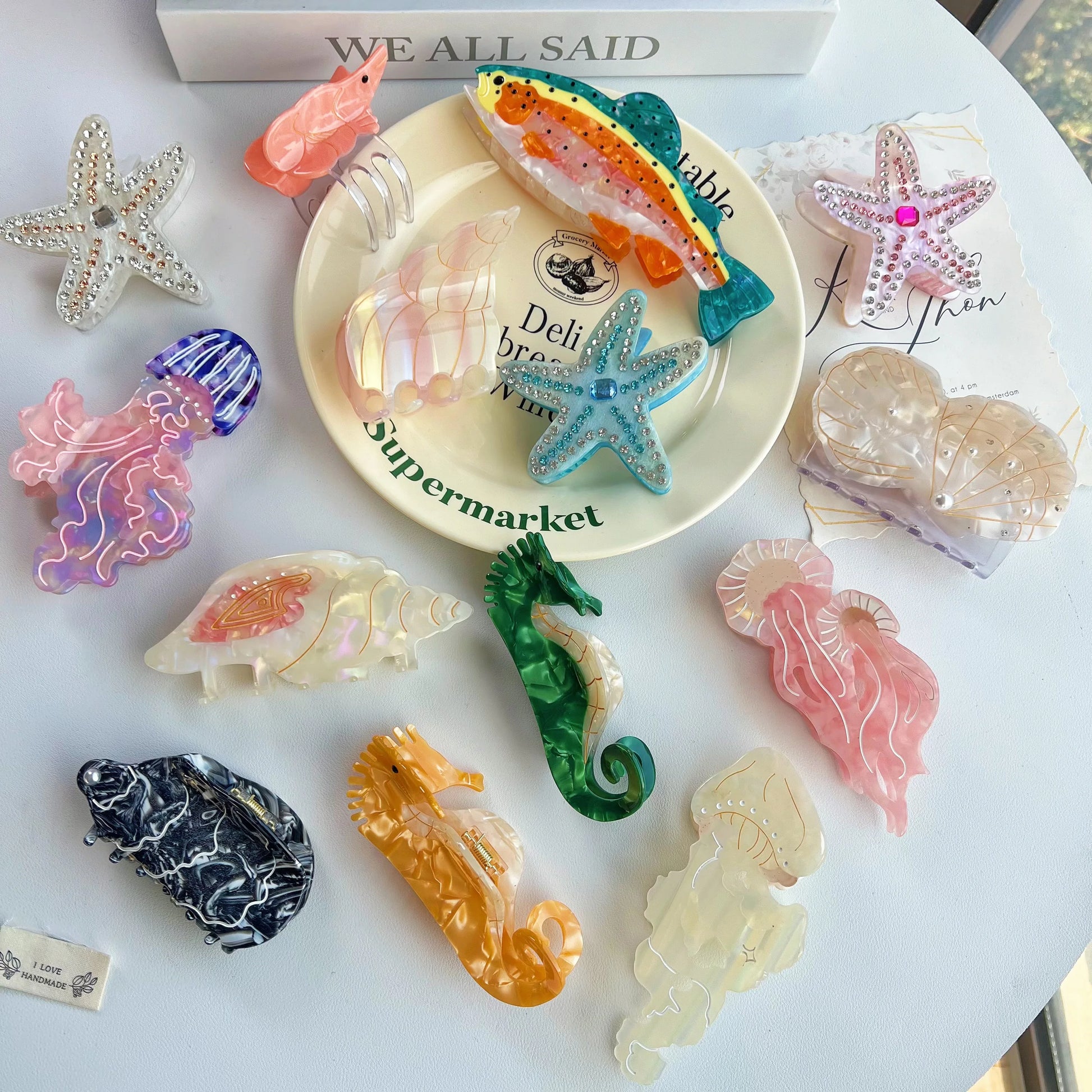 Add a splash of whimsy to your everyday look with our Sea Animal Claw Hair Clips—a charming collection of handmade hair accessories inspired by the magic of the sea. Featuring playful designs like starfish, seahorses, and seashells, each clip brings a breezy coastal vibe to your hairstyle.